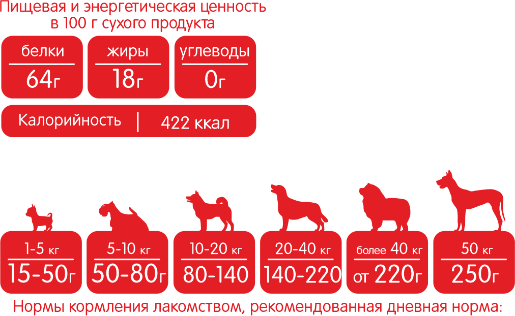 Лакомство безуглеводное и содержит множество полезных аминокислот. У собак, которые употребляют добавку, улучшается состояние шерсти, когтей, кожи, суставов, мышечной ткани, укрепляется иммунная система, из-за чего любимец будет реже болеть.